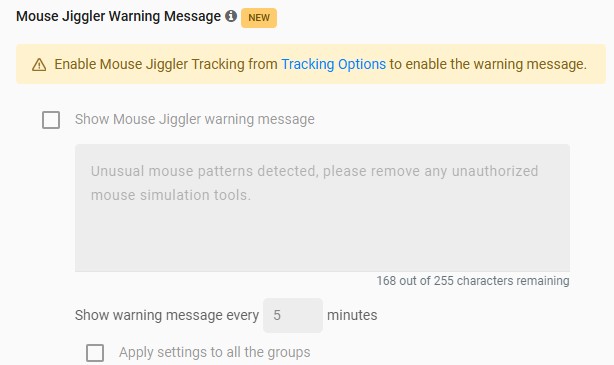 Settings → BrowseReporter → Client Settings → Mouse Jiggler Warning Messages