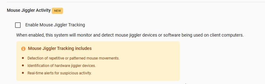 As of CurrentWare version 12.0.0, CurrentWare has Mouse Jiggler Detection that helps ensure accurate productivity data by identifying simulated or automated mouse activity caused by software or hardware mouse jigglers. This prevents false engagement signals in remote and hybrid work environments.