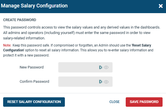 To protect sensitive salary data, you can set a password to restrict access. Only operators with the "Salary Configuration and Insights" permission can access and edit this information. Without the correct password, operators are blocked from viewing or editing any salary details.